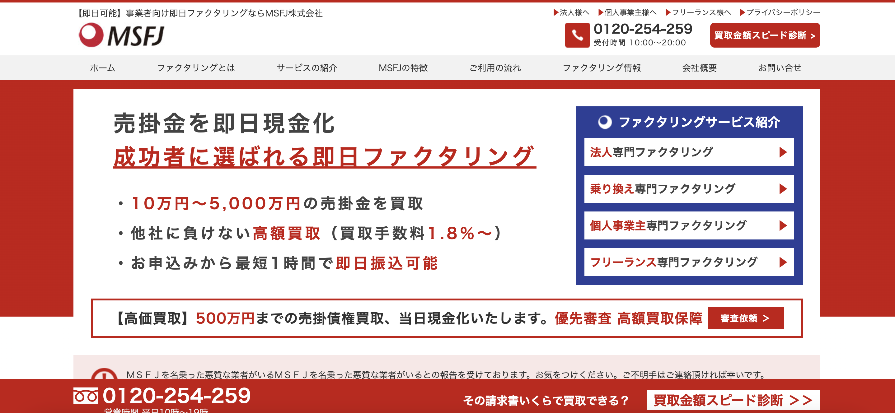 買取可能額の範囲が30万円〜最大1億円(場合によってはそれ以上も可能)と幅広く、さまざまな業種のニーズに応えています。必要書類は多いものの、その分詳細なサポートと財務コンサルティングも提供しており、資金調達を超えた経営サポートが魅力です。